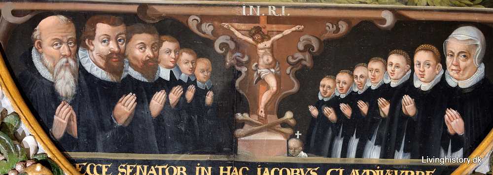06.12.2021Jacob Clausen, raadmand i Slangerup, d. 1624 efter 53 års ægteskab. Hustru Kirstine Jørgensdatter, d. 1629, med børn og børnebørn.